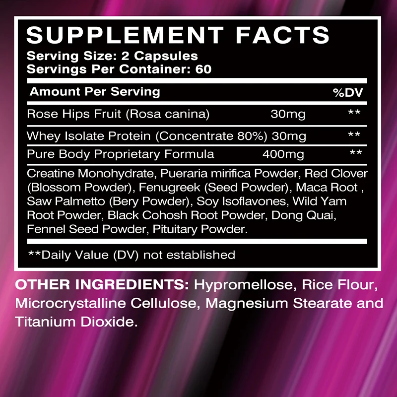 Unlike generic beauty pills, this formula centers on real, plant-derived phytoestrogens and a precise blend of two time-tested ingredients. Saw Palmetto and Maca Root work in concert to help support hormonal balance, energy, and mood while promoting skin elasticity and connective tissue health—key factors in maintaining natural curves.